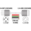 • Cordon adaptateur pour génératrice avec prise Nema 14-50P 120/240 V 50 A et receptacle Nema L14-30R 120/240 V 30 A